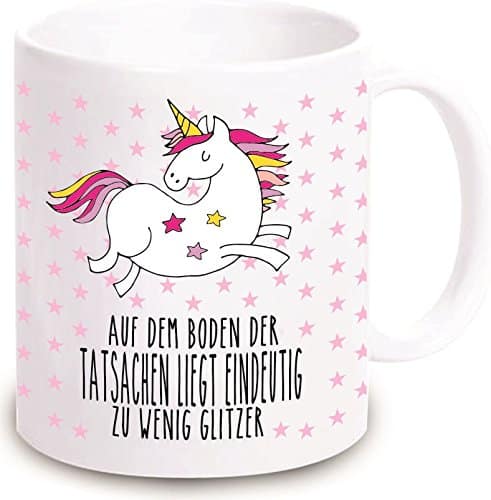 Einhorn Tasse “Auf dem Boden der Tatsachen liegt eindeutig zu wenig Glitzer”